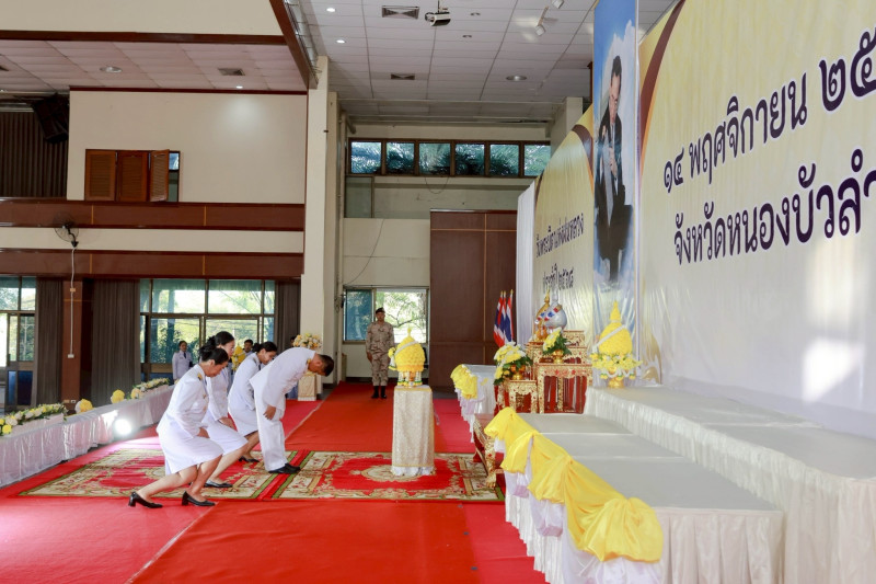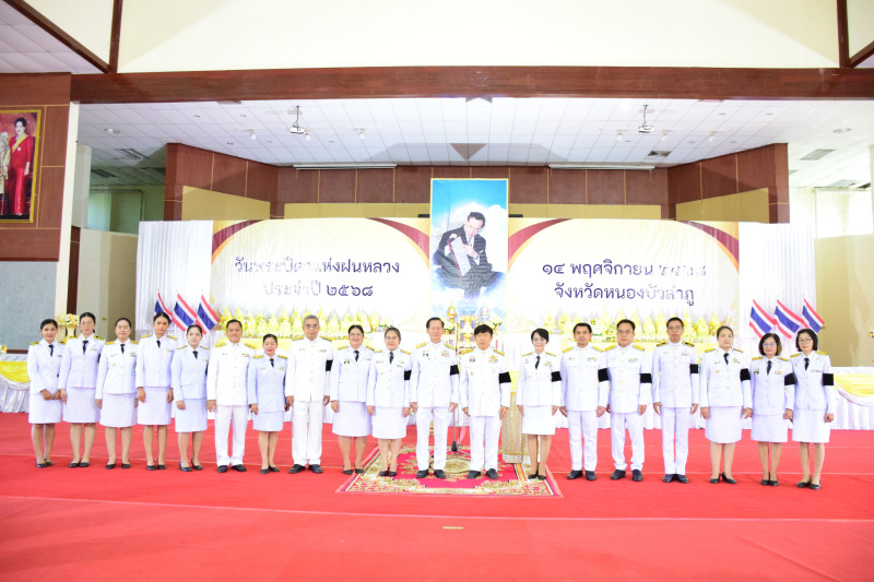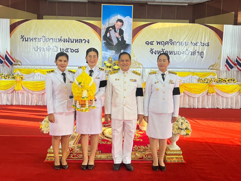ว่าที่ร้อยตรี จอมประสาน ผิวหูม สหกรณ์จังหวัดหนองบัวลำภู พร้อมด้วย นางสาวนัทธมนต์ พรหมมา หัวหน้าฝ่ายบริหารทั่วไป และเจ้าหน้าที่ฝ่ายบริหารทั่วไป ร่วมพิธีวางพานพุ่มดอกไม้สดเนื่องในวันพระบิดาแห่งฝนหลวง ประจำปี พ.ศ. 2568 เพื่อน้อมรำลึกในพระมหากรุณาธิคุณของพระบาทสมเด็จ พระบรมชนกาธิเบศร มหาภูมิพลอดุลยเดชมหาราช บรมนาถบพิตร โดยมี นายศศิน พัฒนภิรมย์ รองผู้ว่าราชการจังหวัดหนองบัวลำภู เป็นประธานในพิธีฯ ณ ห้องประชุมอนาลโย ศาลากลางจังหวัดหนองบัวลำภู