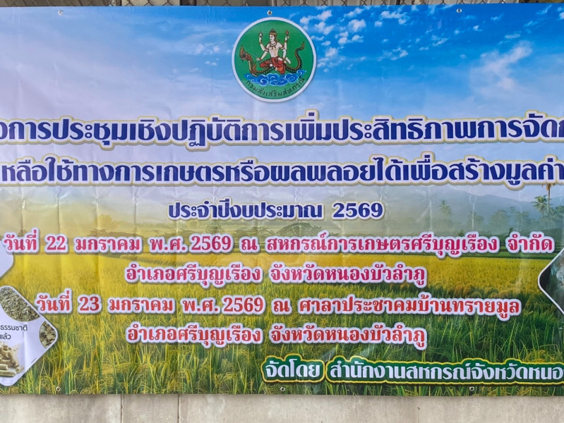 ดำเนินการจัดโครงการประชุมเชิงปฏิบัติการเพิ่มประสิทธิภาพการจัดการวัสดุเหลือใช้ทางการเกษตรหรือผลพลอยได้เพื่อสร้างมูลค่าเพิ่ม ประจำปีงบประมาณ 2569โดยรุ่นที่ 1 เป้าหมายประกอบไปด้วย สมาชิกสหกรณ์การเกษตรศรีบุญเรือง จำนวน 20 ราย