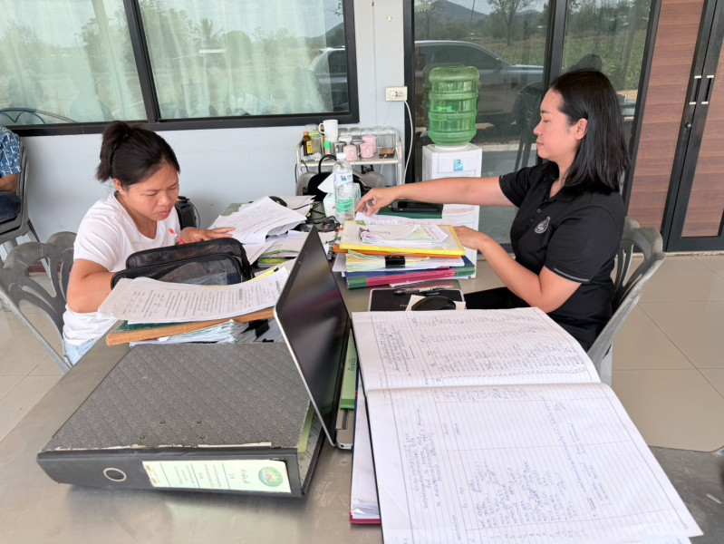 และนางสาววิไลพร แซงโคตร นักวิชาการสหกรณ์ปฏิบัติการ เข้าตรวจสอบกิจการและฐานะทางการเงินของสหกรณ์กองทุนสวนยางสงเคราะห์นาวัง จำกัด