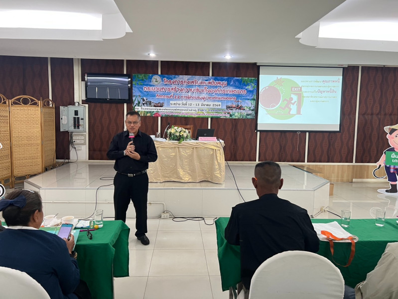 ว่าที่ร้อยตรี จอมประสาน ผิวหูม สหกรณ์จังหวัดหนองบัวลำภู ให้เกียรติเป็นวิทยากร ในหัวข้อ “โครงการปรับโครงสร้างหนี้เกษตรกรสมาชิกกองทุนฟื้นฟูและพัฒนาเกษตรกรประเภทหนี้สหกรณ์”