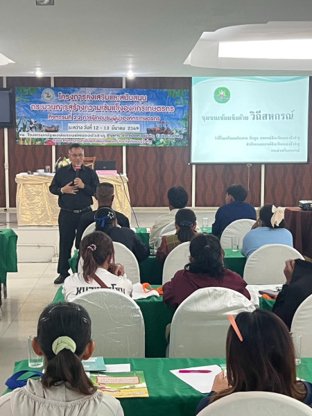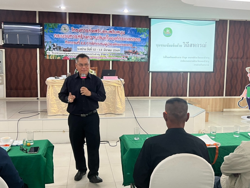 ในการจัดกิจกรรมที่ 2.2 ฝึกอบรมผู้นำองค์กรเกษตรกร ภายใต้โครงการส่งเสริมและสนับสนุนกระบวนการสร้างความเข้มแข็งองค์กรเกษตรกร รุ่นที่ 2